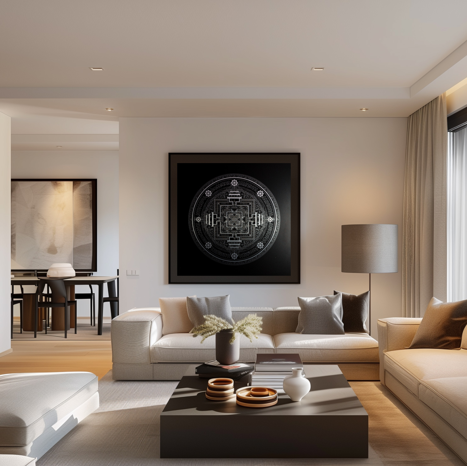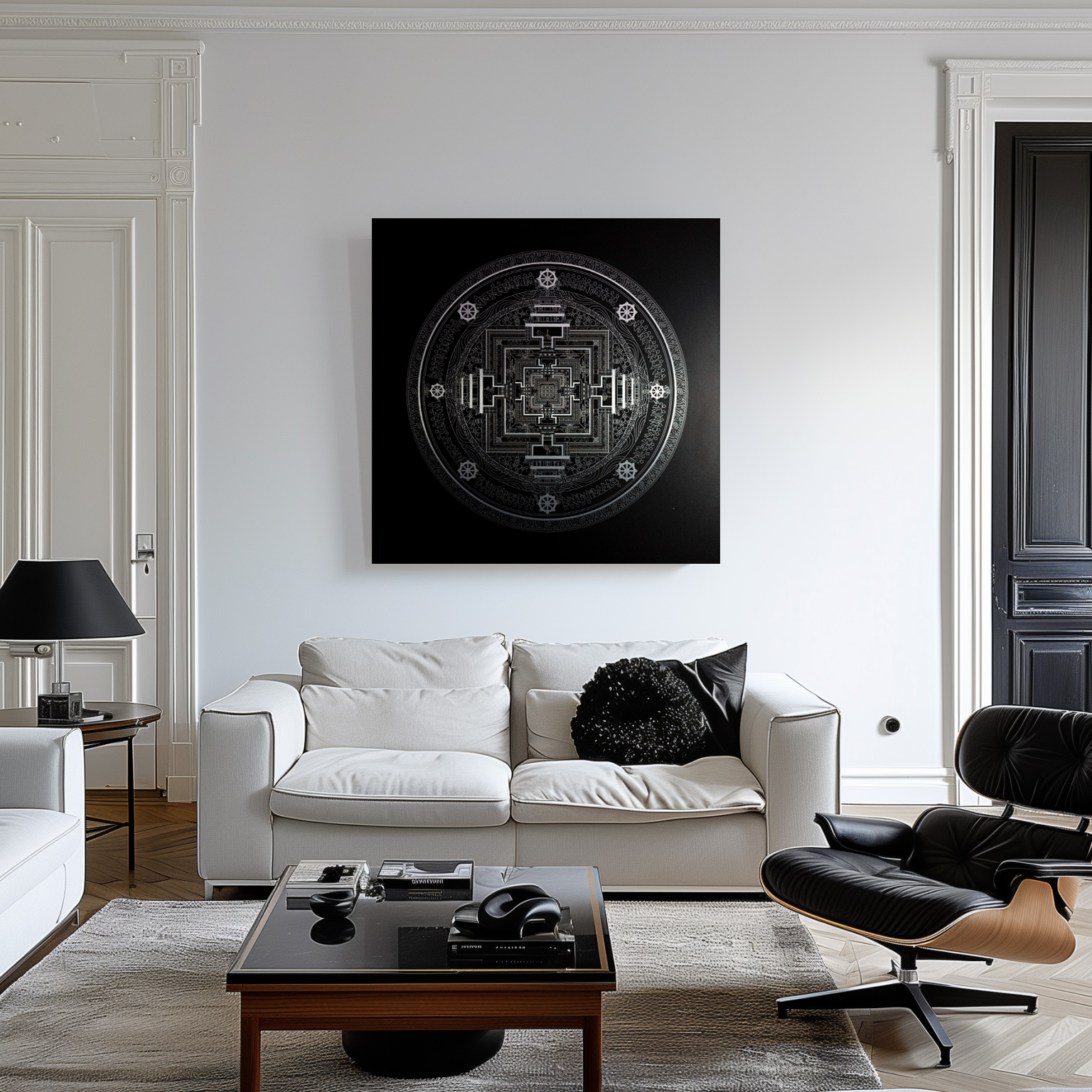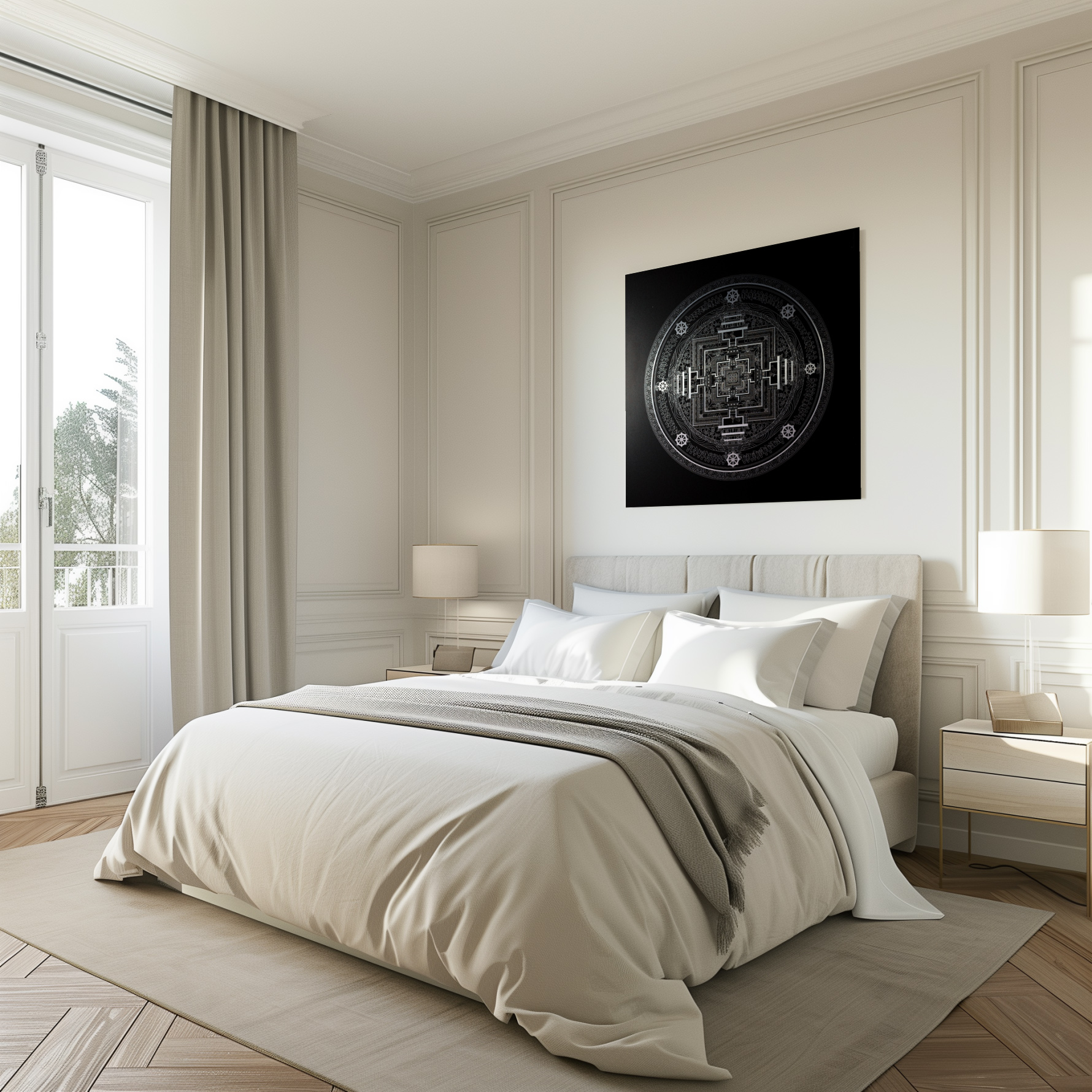 Notre Mandala du Kalachakra est est réalisé en création digitale avec d’être appliqué en impression direct sur aluminium. Ce procédé permet des proportions, une symétrie et un tracé d’une précision exceptionnelle.